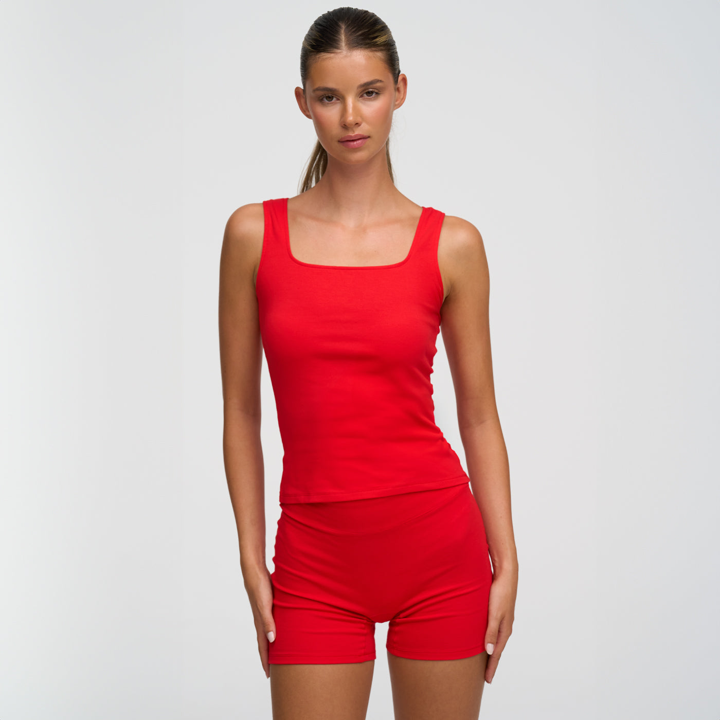 Cotton tank top with square neckline